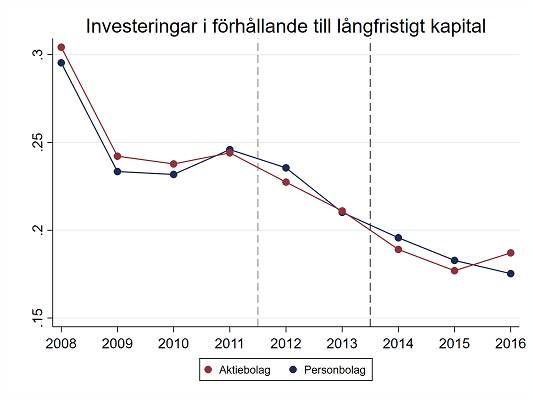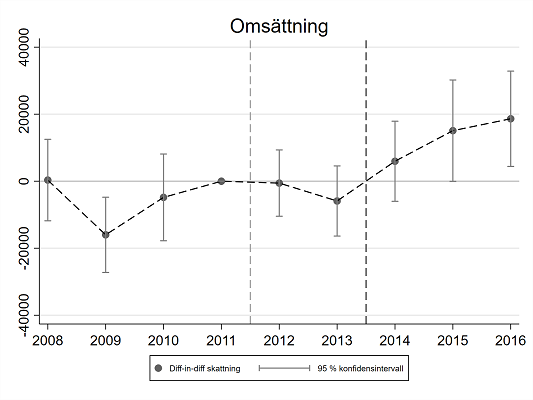 Däremot hade sänkningen en betydande effekt på vissa andra indikatorer som beskriver företagens ekonomiska aktivitet. Enligt undersökningen ökade de mindre företagens omsättning i snitt med 3,2 % och rörelsekostnaderna med 6,1 % efter reformen. De här resultaten tyder på att skattereformen satte fart på de små aktiebolagens ekonomiska aktivitet. Någon betydande effekt på de utbetalda lönerna eller mervärdet i företagen observerades dock inte.